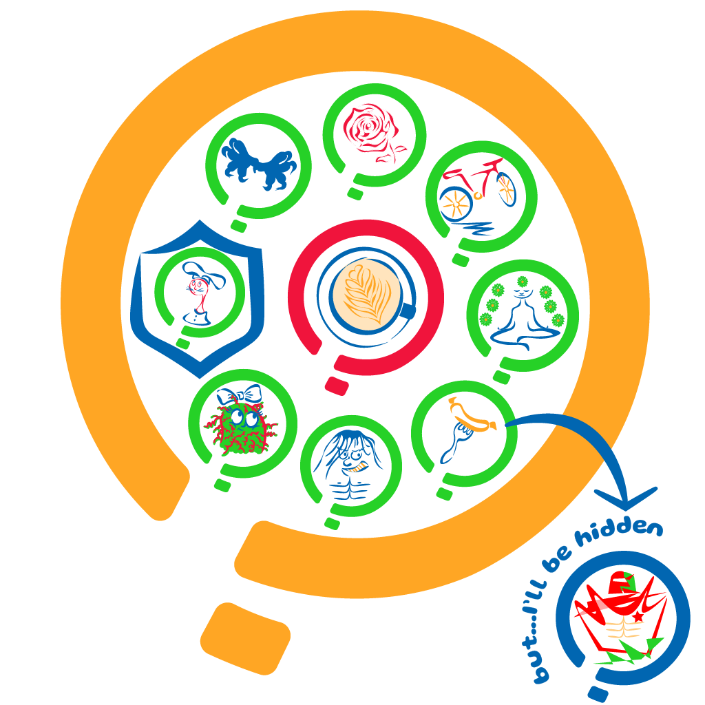 host and guests (clockwise- chef, claw, bloomin, i bike, om, snag, champ and furball) arriving to the coffee phudl